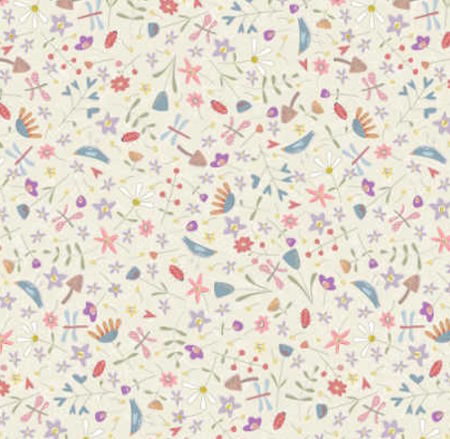 Anni Downs Slow & Steady Flower Meadow Cream Devonstone Fabrics. This is a cream fabric background with a scattering of flowers on it. These are all 100% cotton, 43″ wide.