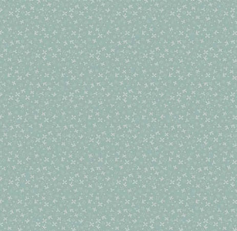 Anni Downs Slow & Steady Star Flowers Turquoise Devonstone Fabrics. This is a Turquoise fabric background with star shape flowers on it. These are all 100% cotton, 43″ wide.
