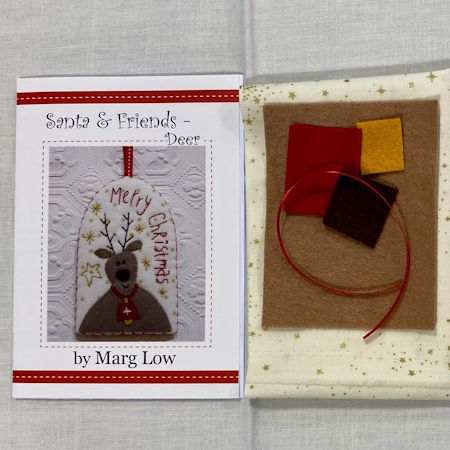 Marg Low Designs Santa and Friends Christmas Tag Kit. This cute Reindeer tag combines a little stitching and felt applique. The finished size is 5.5″ x 3.5″