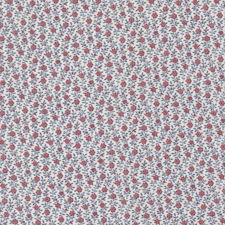 American Gatherings III Berry Blue by Primitive Gatherings Cotton Fabric from Moda. This is a cream fabric background with reddish pink flowers on. It is 100% cotton, 44” wide
