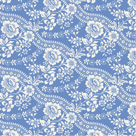 Tilda Something Blue Celeste Blue. This is a  blue fabric background with cream flowers. It is 100% cotton, 44” wide.