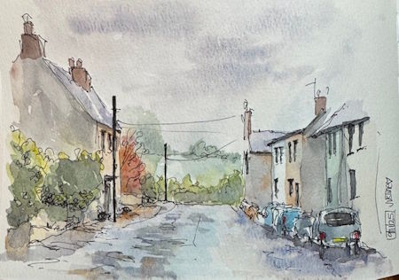 I will sketch a light, simple scene, using ink pen and watercolours.